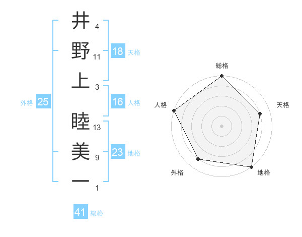 井野上 睦美一さんを姓名の画数から五運を鑑定