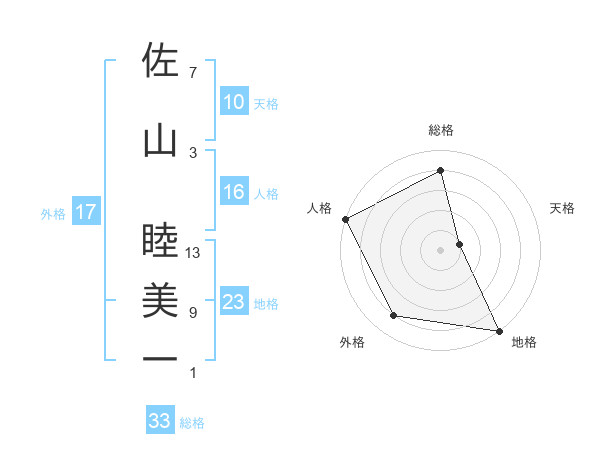 佐山 睦美一さんを姓名の画数から五運を鑑定