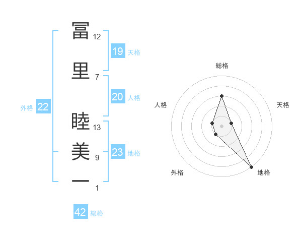 冨里 睦美一さんを姓名の画数から五運を鑑定