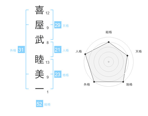 喜屋武 睦美一さんの外格は31画の5点!
