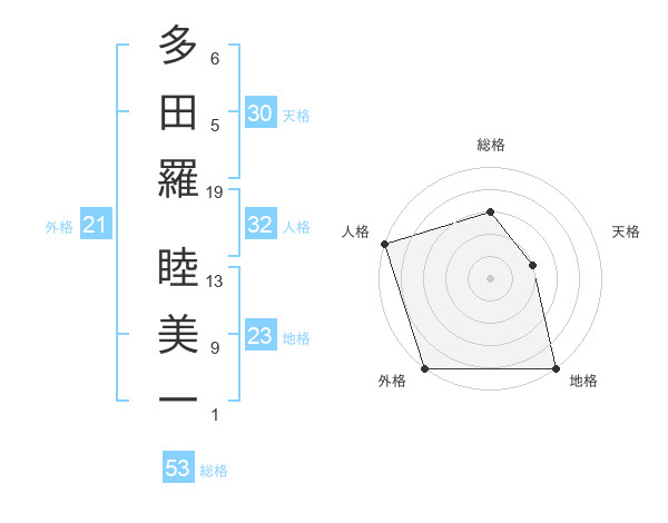 多田羅 睦美一さんを姓名の画数から五運を鑑定