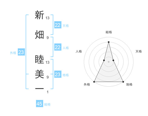 新畑 睦美一さんを姓名の画数から五運を鑑定