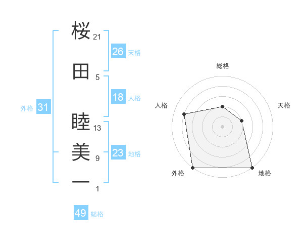 桜田 睦美一さんを姓名の画数から五運を鑑定