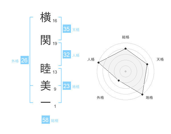 横関 睦美一さんの総格は58画の4点!