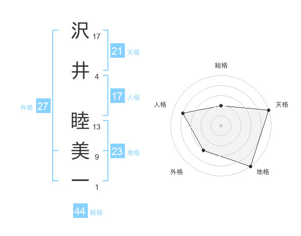 沢井 睦美一さんを姓名の画数から五運を鑑定