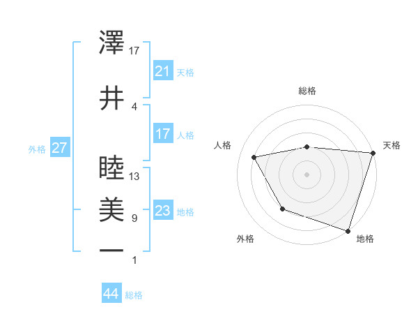 澤井 睦美一さんを姓名の画数から五運を鑑定