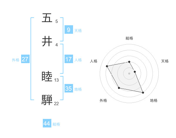 五井 睦騨さんを姓名の画数から五運を鑑定