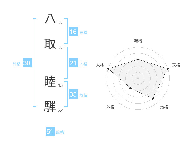 八取 睦騨さんを姓名の画数から五運を鑑定