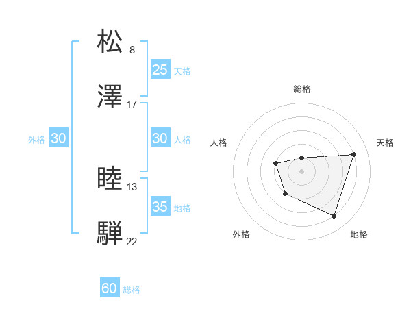 松澤 睦騨さんを姓名の画数から五運を鑑定