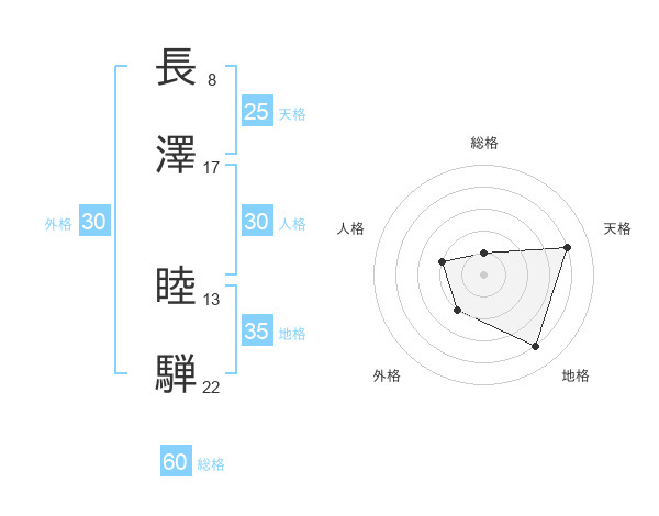 長澤 睦騨さんの総格は60画の1点!