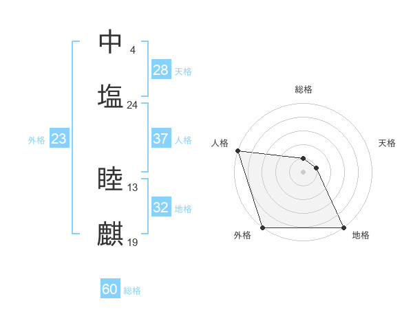 中塩 睦麒さんを姓名の画数から五運を鑑定