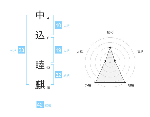 中込 睦麒さんの外格は23画の5点!