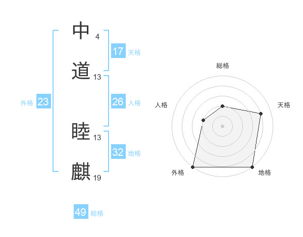 中道 睦麒さんの総格は49画の2点!