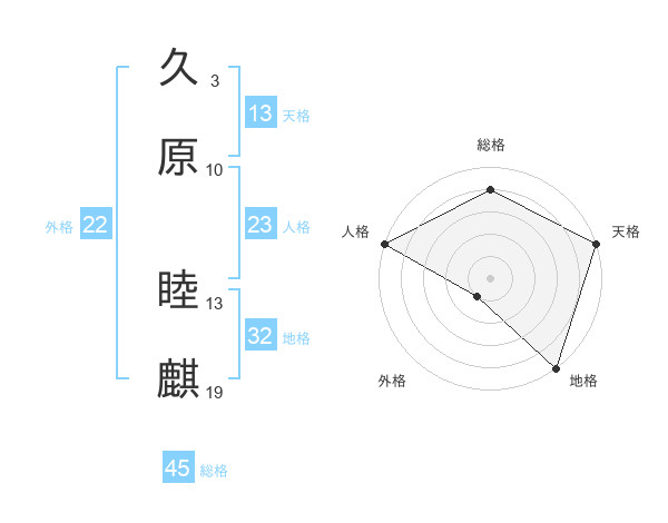 久原 睦麒さんを姓名の画数から五運を鑑定
