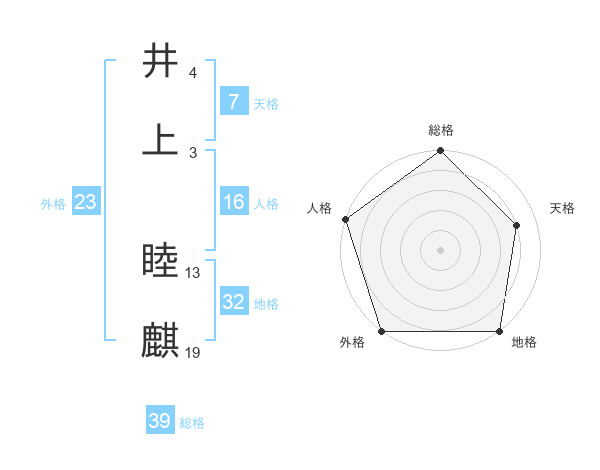 井上 睦麒さんを姓名の画数から五運を鑑定