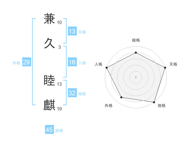 兼久 睦麒さんの総格は45画の4点!