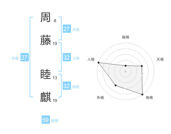 周藤 睦麒さんを姓名の画数から五運を鑑定