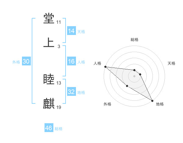 堂上 睦麒さんの総格は46画の1点!