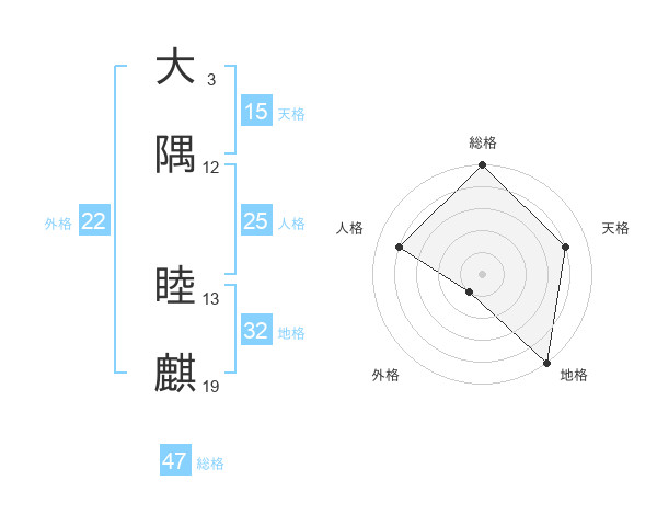 大隅 睦麒さんの総格は47画の5点!