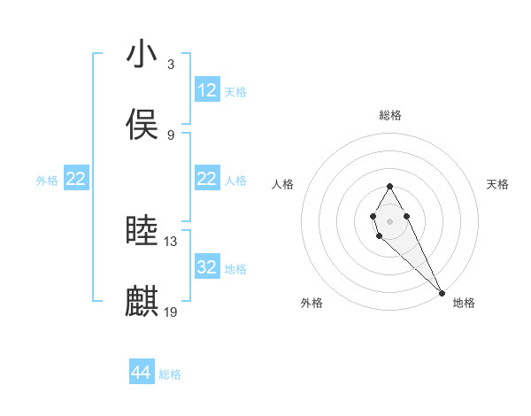 小俣 睦麒さんの外格は22画の1点!
