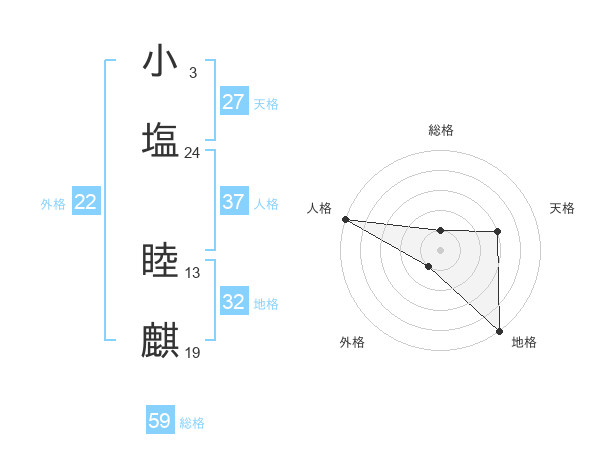小塩 睦麒さんの外格は22画の1点!
