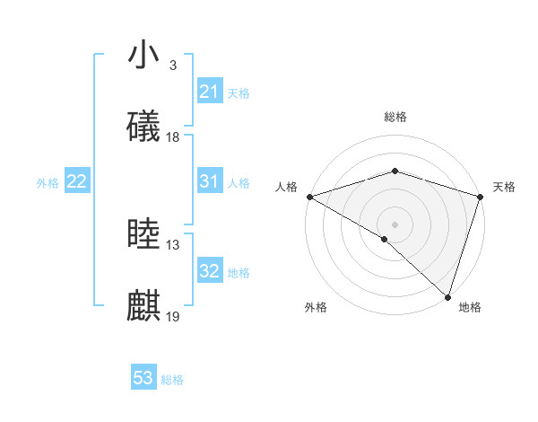 小礒 睦麒さんを姓名の画数から五運を鑑定