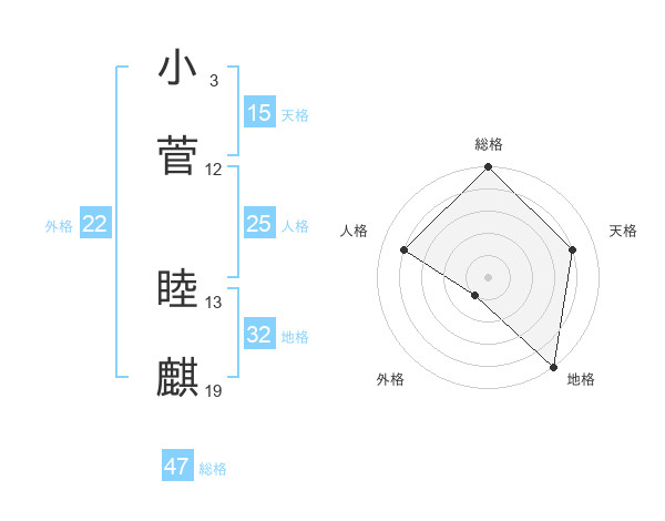 小菅 睦麒さんの総格は47画の5点!