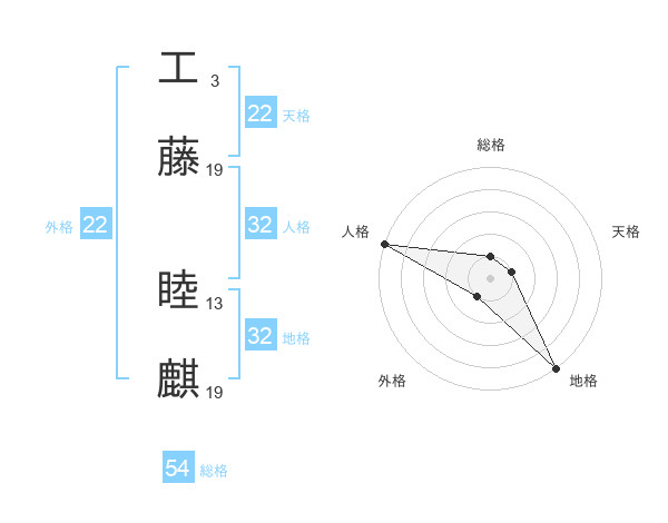 工藤 睦麒さんの外格は22画の1点!