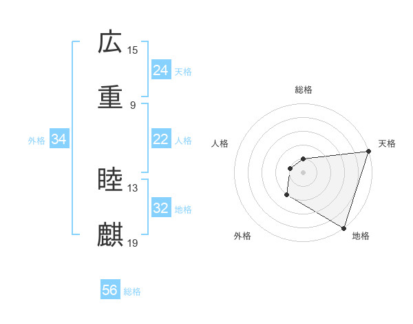 広重 睦麒さんを姓名の画数から五運を鑑定