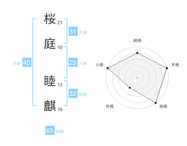 桜庭 睦麒さんを姓名の画数から五運を鑑定