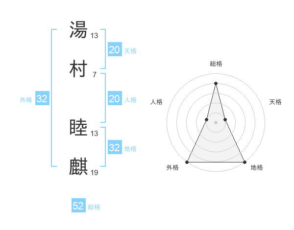 湯村 睦麒さんの総格は52画の4点!