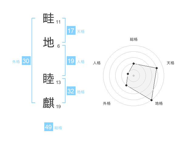 畦地 睦麒さんの総格は49画の2点!