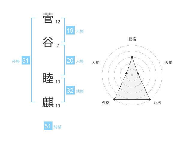 菅谷 睦麒さんの総格は51画の3点!