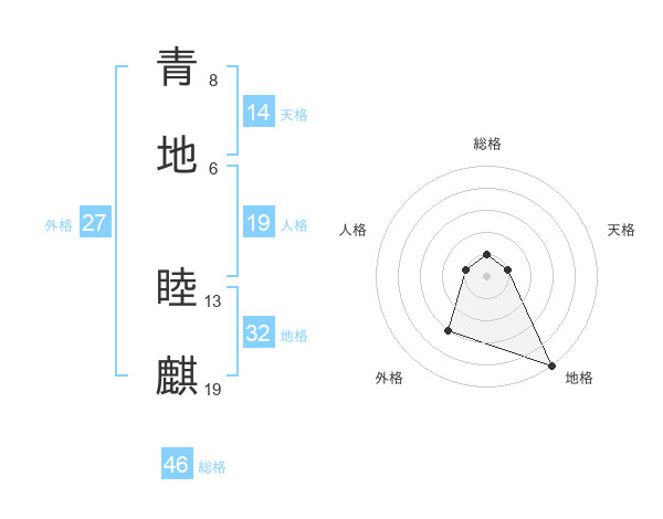 青地 睦麒さんの天格は14画の1点!