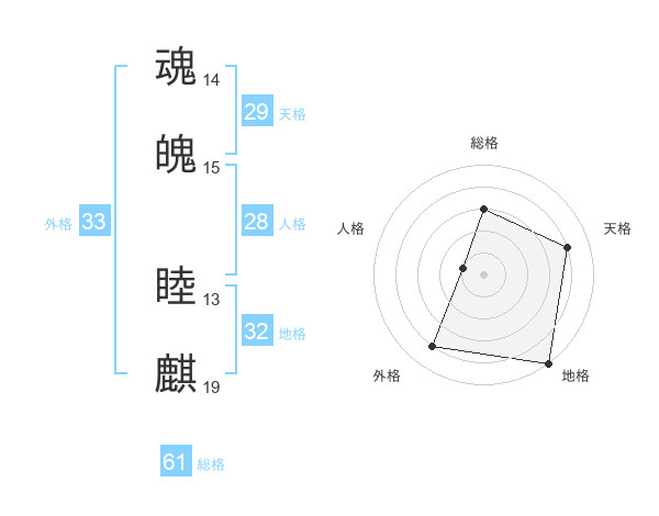 魂魄 睦麒さんの総格は61画の3点!
