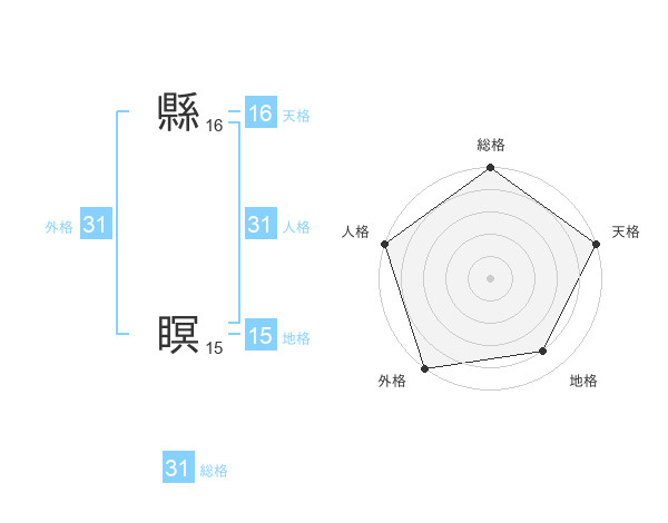 縣 瞑さんの外格は31画の5点!