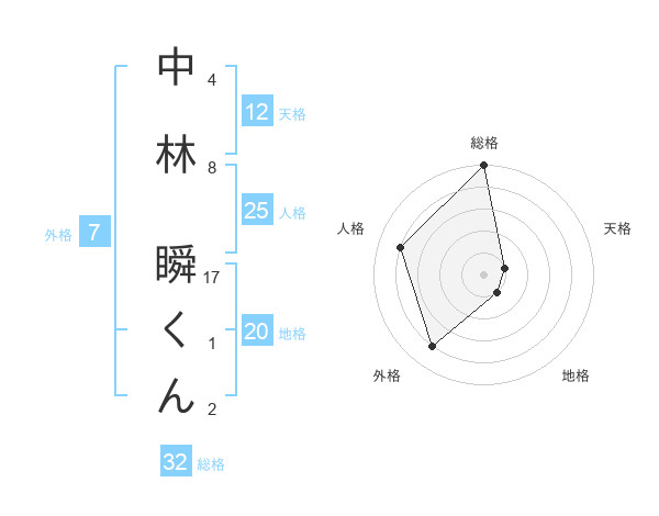 中林 瞬くんさんを姓名の画数から五運を鑑定