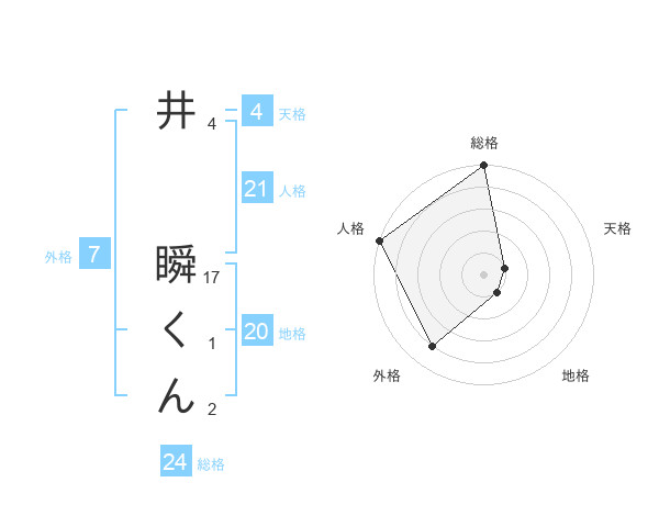 井 瞬くんさんを姓名の画数から五運を鑑定