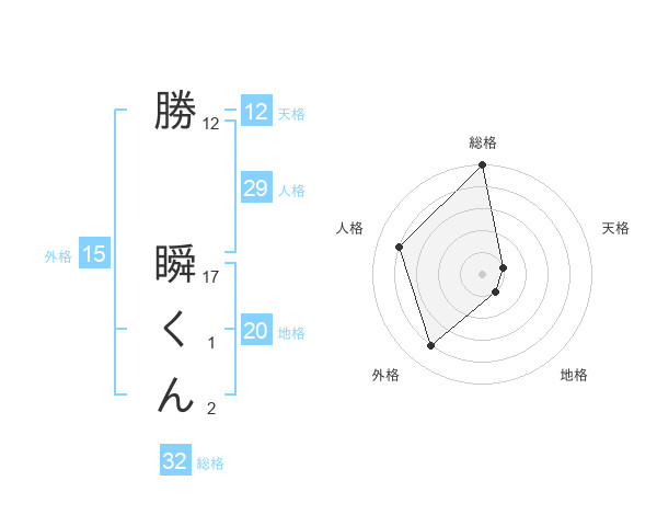 勝 瞬くんさんを姓名の画数から五運を鑑定