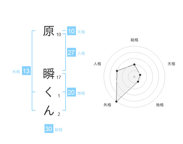 原 瞬くんさんを姓名の画数から五運を鑑定