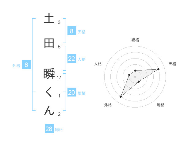 土田 瞬くんさんを姓名の画数から五運を鑑定
