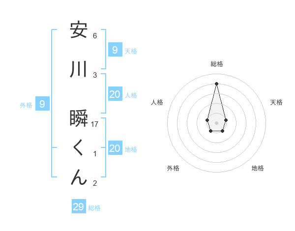 安川 瞬くんさんを姓名の画数から五運を鑑定