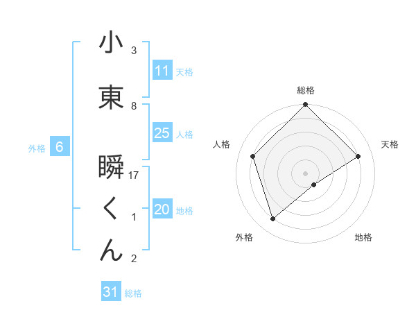 小東 瞬くんさんの総格は31画の5点!