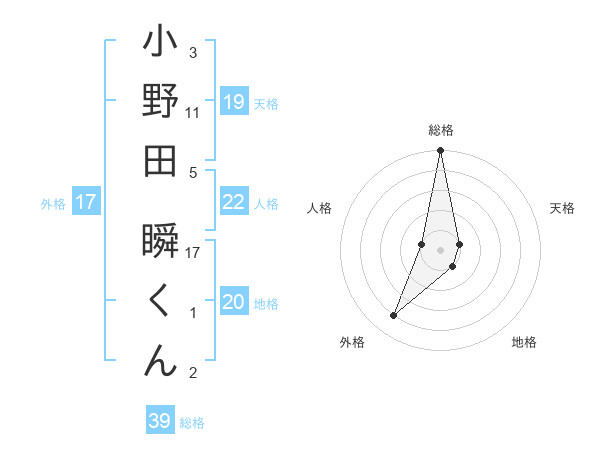 小野田 瞬くんさんを姓名の画数から五運を鑑定
