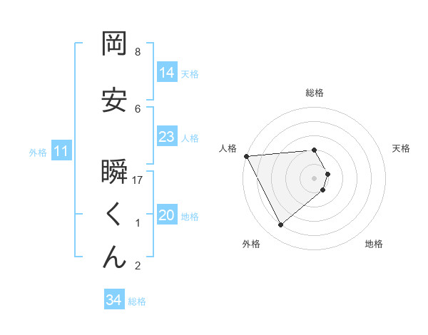 岡安 瞬くんさんの天格は14画の1点!