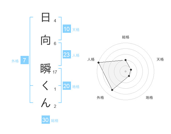 日向 瞬くんさんを姓名の画数から五運を鑑定