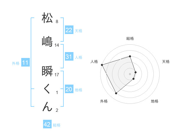 松嶋 瞬くんさんを姓名の画数から五運を鑑定