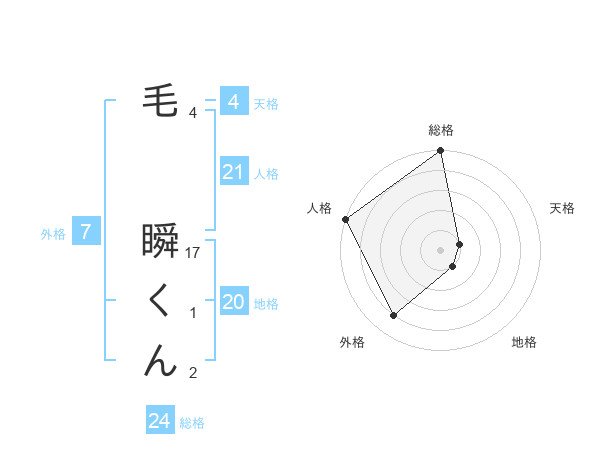 毛 瞬くんさんを姓名の画数から五運を鑑定