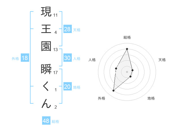 現王園 瞬くんさんを姓名の画数から五運を鑑定