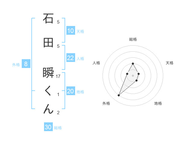 石田 瞬くんさんを姓名の画数から五運を鑑定